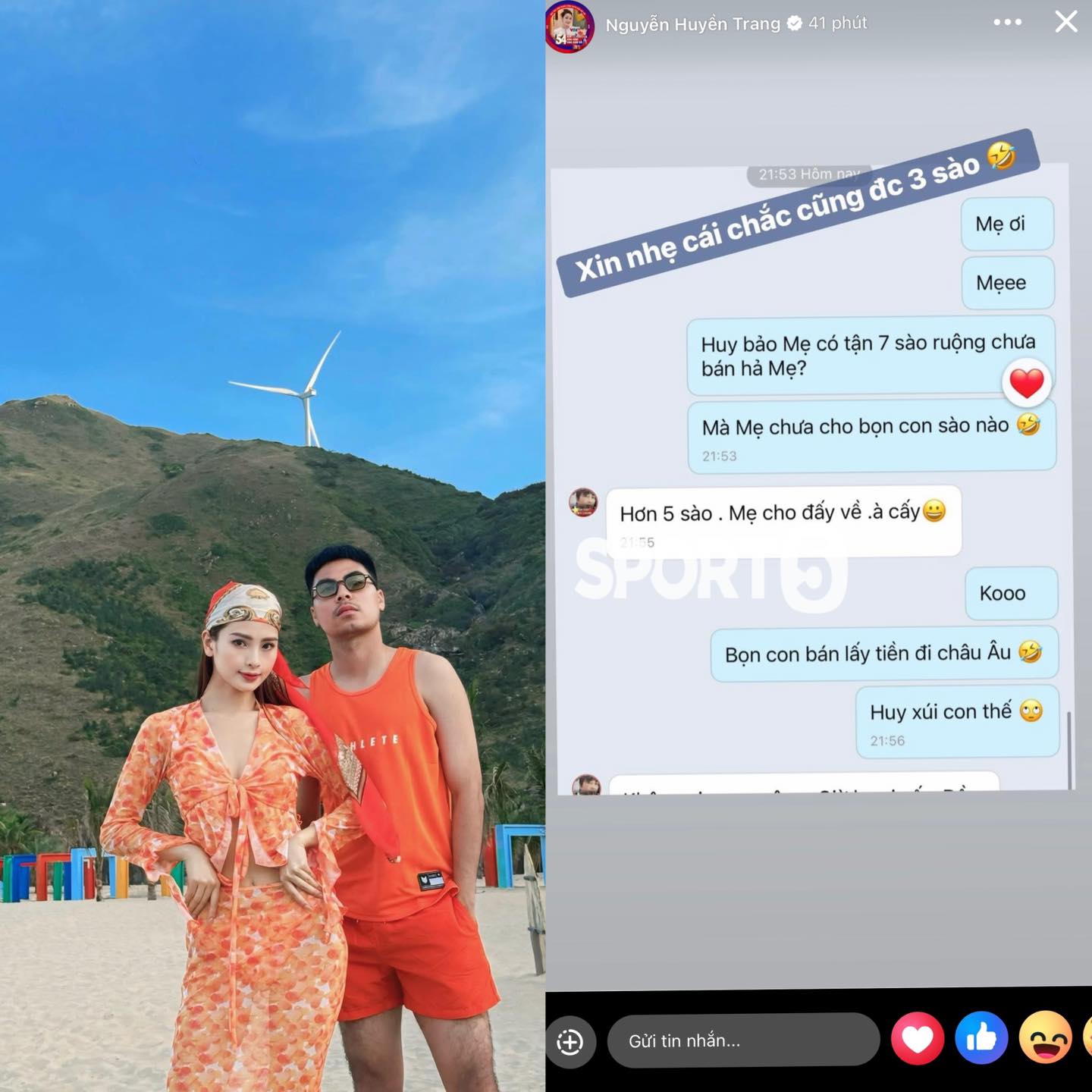 Cách đây không lâu, MC Huyền Trang Mù Tạt gây xôn xao khi khoe đoạn tin nhắn với mẹ của tiền vệ Đức Huy. Theo đó, cô nàng nhắn tin cho mẹ của chàng cầu thủ xưng hô rất thân mật: