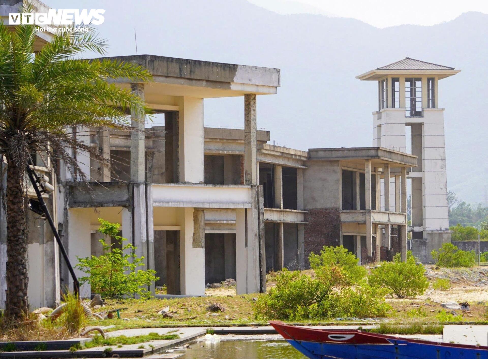 Những công trình thi công xong phần thô thì bị bỏ hoang nhiều năm, rêu phong phủ kín nhìn như những căn nhà ma nằm ven vịnh đẹp Lăng Cô.