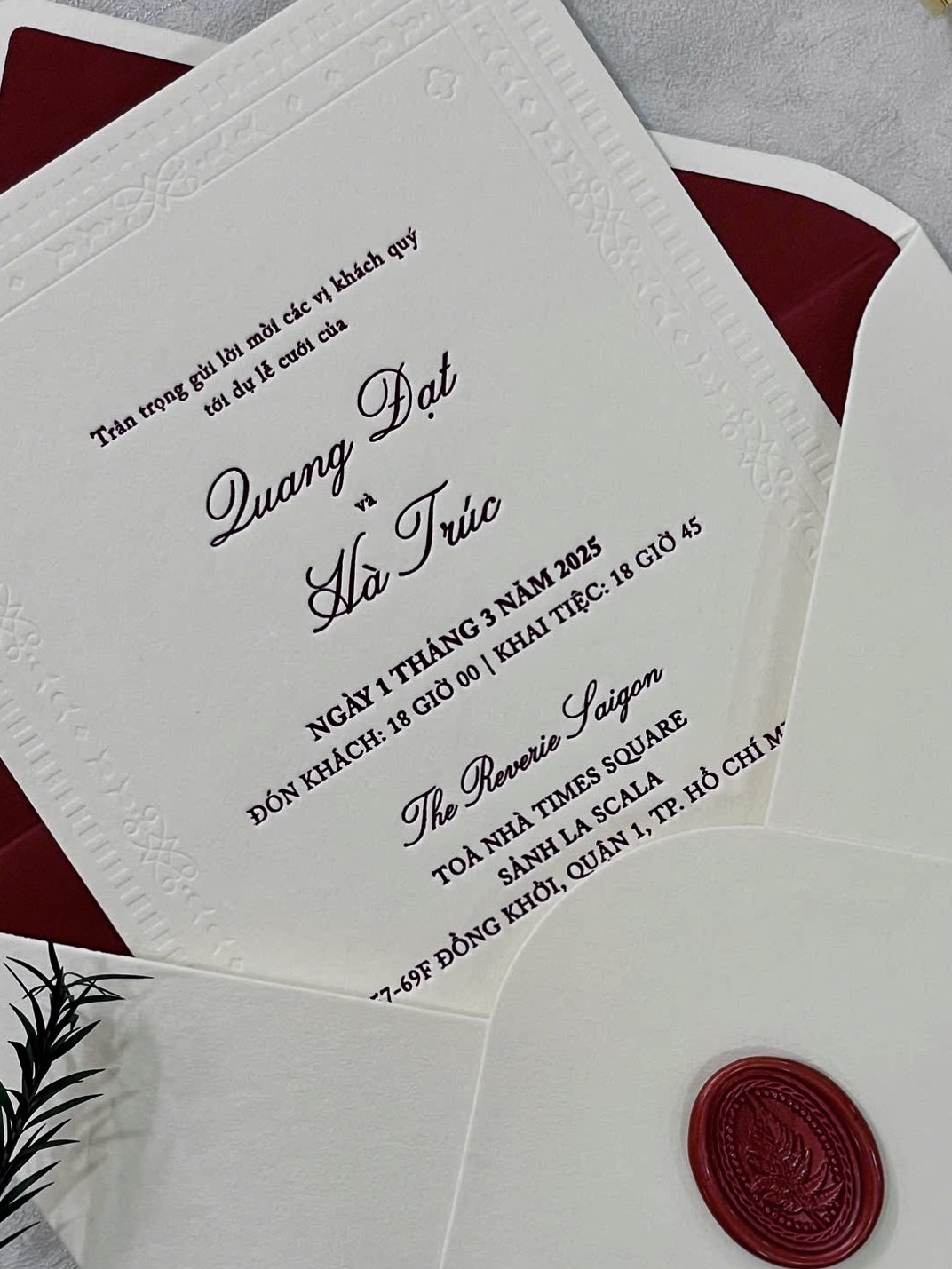 Được biết, lễ cưới của cặp đôi được tổ chức tại một khách sạn 6 sao ở Quận 1, TP.HCM. Đây là một trong những khách sạn sang trọng bậc nhất, tọa lạc ngay giữa trung tâm thành phố. Không gian khách sạn vừa mang hơi hướng cổ điển, lại vẫn hiện đại, thể hiện được sự xa hoa, đẳng cấp.